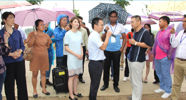 2017年8日25日下午,水利部長江水利委員會城鄉供水規劃與管理培訓班孟加拉、柬埔寨、老撾、緬甸、泰國及越南等6國共30名相關領域的管理人員及技術官員到襄州區參觀考察節水灌溉工程現場。培訓班成員先后參觀了襄州現代農業綜合示范區農業展示館、雙溝鎮東王崗大型噴灌機組現場、程河鎮臥陽崗牡丹園噴灌現場。培訓班成員在現場對襄州區現場技術負責人提出了各種問題,比如在設計節水灌溉工程前是否考慮了干旱洪澇因素影響,以及對節水灌溉水量的控制等問題,襄州區現場技術負責 人通過翻譯都迸行了詳細說明。培訓班成員還主動與技術負責人合影留念,并留下了電子郵箱以便相互學習交流。